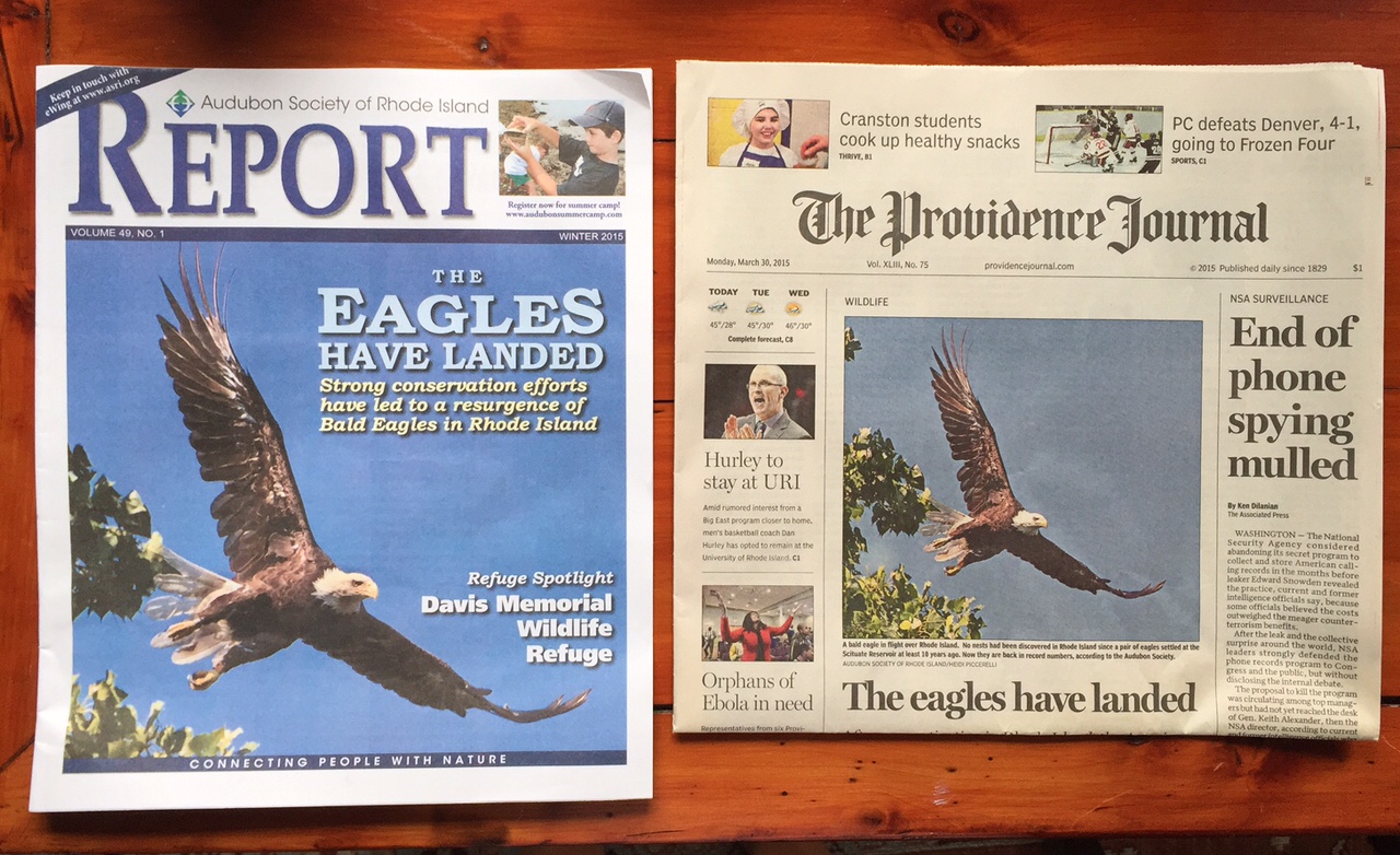 This year I had the honor of having one of my Eagle shots grace the covers of two well known local publications. The Audubon Society of Rhode Island’s Annual Report, and The Providence Journal. Perhaps those two eagles back in February 2014 were more symbolic than I had thought. I could only have dreamed about having one of my photographs published on the cover of anything!
