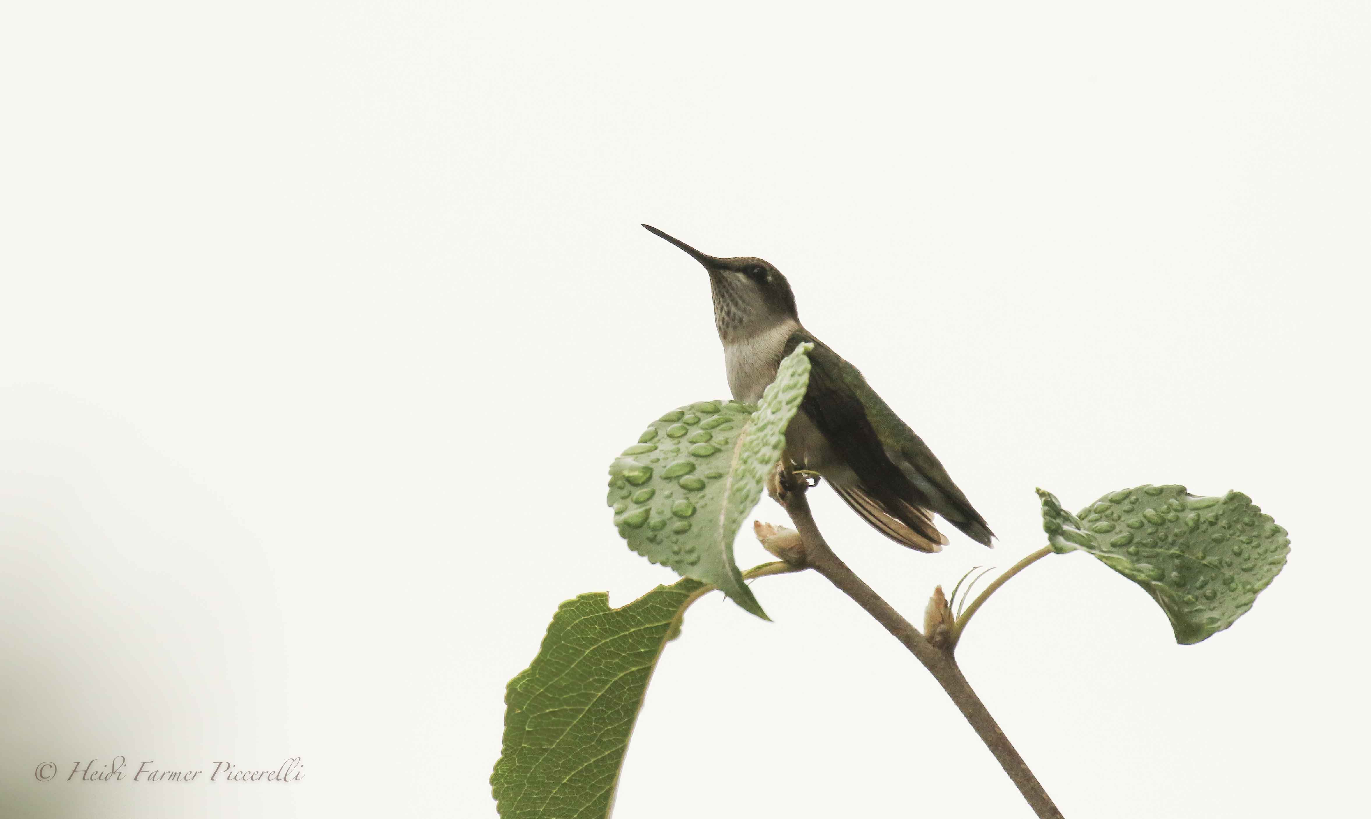 In true fashion, this little female Ruby-throated Hummingbird perched on the line my husband had put up for the feeders, and looked through the window at me as I was about to photograph it. What happened next had me laughing so hard I almost dropped my camera.