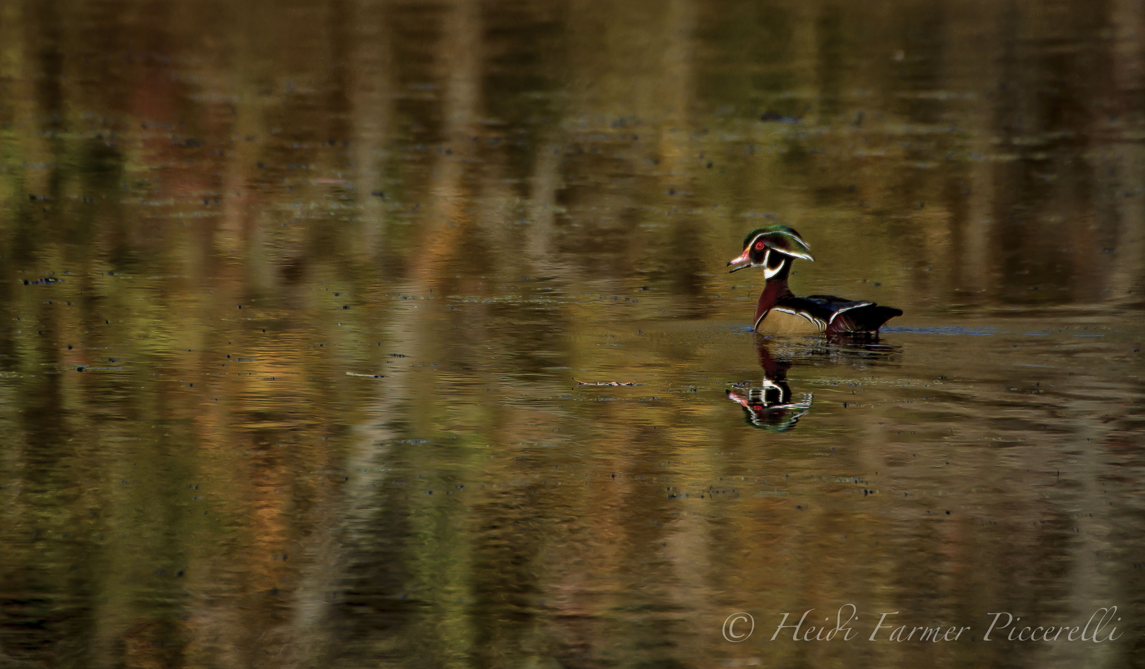 The fall reflections on the water created the perfect blend for this Wood Duck.  I think every color is represented (except for the brilliant glowing red of the eye, but who’s counting – you get the point).