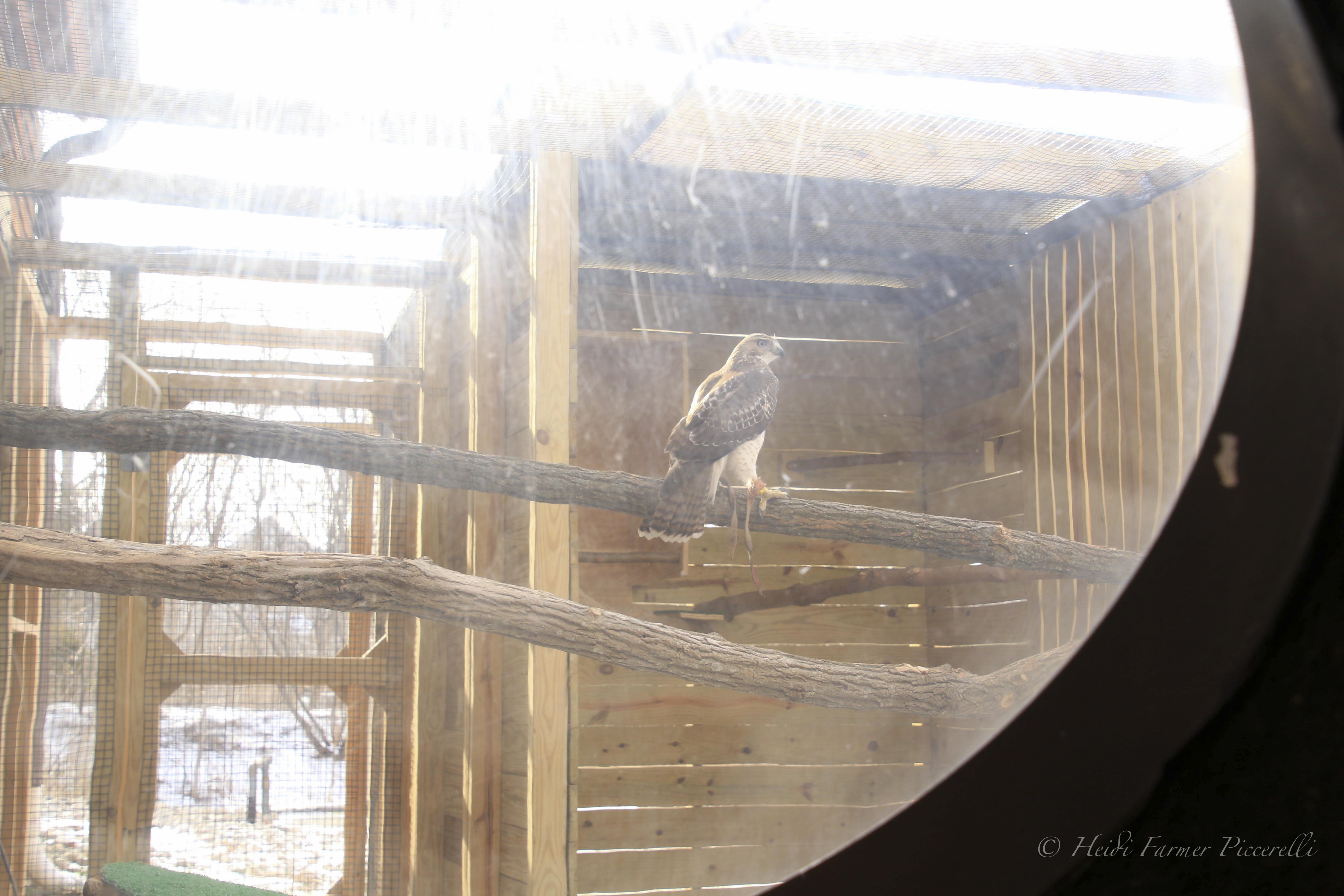 You can only imagine my excitement when I heard the news that The Audubon Society of Rhode Island (our local Audubon organization) would be taking in a rescued & rehabilitated Red-tailed Hawk as its newest resident. I had the honor of attending the long-awaited arrival to her new home at the Environmental Educational Center in Bristol, and she certainly did not disappoint! In she came hidden in a big white carrier which looked more like a mini refrigerator. Breathlessly, we all waited as the caretaker cautiously opened the door wearing his thick raptor glove in an effort to ease her out (in the following video you can hear all of our gasps as she makes her formal entrance out into her new environment). WHAT A BEAUTY!!!