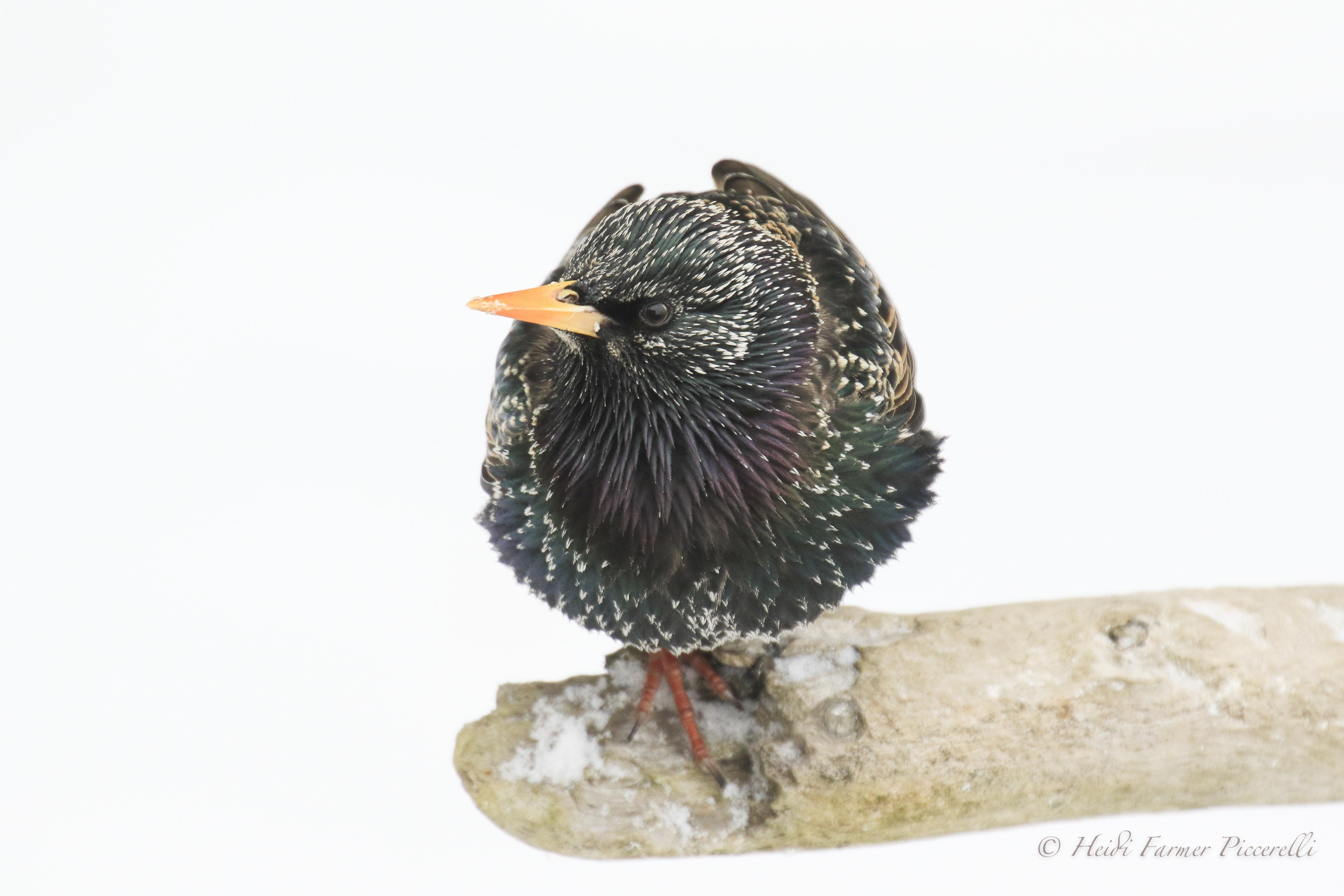 The disruptive, loud, territorial (the list goes on) European Starlings had a family reunion of sorts. This invasive species is fierce, particularly fierce with each other or anyone else who is competing for food, and apparently believe they rule the bird world. While the photographer side of me enjoys their speckled colorful feathers, as well as their seemingly dark mysterious personality, the bird advocate in me isn’t so in love with them. Policing their activity every 1/2 hr or so is necessary or no other birds will have an opportunity to eat!